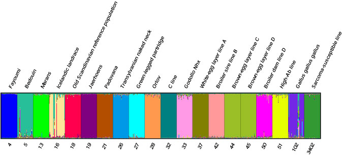 For the *.indivq file, copy and paste the dark grey highlighted matrix (shown below) from the '*_run_1_f' file into the *.indivq file. Note that the order of the individuals in this file dictate the order in the Distruct chart.Inferred ancestry of individuals: Label (%Miss) Pop: Inferred clusters 1 gaig_AHP116 (75) 1 : 0.000 0.000 0.000 0.000 0.000 0.000 0.000 1.000 0.000 0.000 2 gaig_AHP280 (78) 1 : 0.002 0.003 0.003 0.001 0.002 0.003 0.002 0.983 0.001 0.001 3 gaig_AHP280 (82) 1 : 0.000 0.000 0.000 0.000 0.000 0.000 0.000 0.999 0.000 0.000 4 gaig_TP2943 (67) 1 : 0.001 0.001 0.001 0.000 0.001 0.001 0.001 0.992 0.001 0.001 5 gaig_TP2991 (65) 1 : 0.000 0.000 0.000 0.000 0.000 0.000 0.000 0.999 0.000 0.000 6 gaig_TP2991 (84) 1 : 0.000 0.000 0.000 0.000 0.000 0.000 0.000 0.999 0.000 0.000 7 gaig_TP3004 (81) 1 : 0.000 0.000 0.000 0.000 0.000 0.000 0.000 0.999 0.000 0.000 8 e_AHP2715 (92) 2 : 0.004 0.014 0.005 0.380 0.008 0.021 0.029 0.000 0.006 0.532 9 e_AHP2722 (78) 2 : 0.017 0.046 0.002 0.507 0.112 0.175 0.082 0.000 0.014 0.045 10 e_AHP2731 (79) 2 : 0.019 0.004 0.004 0.314 0.031 0.568 0.009 0.000 0.050 0.001 11 e_AHP2746 (89) 2 : 0.031 0.042 0.002 0.504 0.038 0.353 0.008 0.000 0.011 0.011 12 e_AHP2759 (89) 2 : 0.002 0.054 0.004 0.808 0.007 0.067 0.032 0.006 0.017 0.003 13 e_AHP2765 (78) 2 : 0.003 0.036 0.005 0.681 0.106 0.069 0.012 0.081 0.005 0.001 14 e_JFP644 (85) 2 : 0.012 0.034 0.002 0.293 0.010 0.014 0.329 0.000 0.293 0.013 15 e_MVZ250717 (90) 2 : 0.007 0.003 0.001 0.793 0.037 0.008 0.025 0.021 0.061 0.044 16 e_TP29441 (78) 2 : 0.005 0.002 0.001 0.473 0.002 0.075 0.012 0.247 0.012 0.171 17 e_TP29442 (82) 2 : 0.005 0.067 0.001 0.637 0.015 0.034 0.014 0.222 0.001 0.003 18 e_TP29700 (74) 2 : 0.004 0.005 0.003 0.266 0.072 0.209 0.004 0.000 0.415 0.023 19 e_TP29715 (78) 2 : 0.003 0.009 0.002 0.593 0.013 0.063 0.003 0.000 0.028 0.286 20 e_TP29950 (99) 2 : 0.047 0.060 0.052 0.548 0.056 0.053 0.056 0.004 0.062 0.062 21 e_TP29957 (98) 2 : 0.025 0.038 0.020 0.643 0.059 0.040 0.028 0.005 0.044 0.098 22 e_TP29959 (98) 2 : 0.015 0.043 0.016 0.589 0.054 0.036 0.026 0.133 0.018 0.072 23 e_TP29969 (92) 2 : 0.008 0.008 0.008 0.662 0.015 0.023 0.005 0.247 0.008 0.016 24 e_TP29971 (99) 2 : 0.049 0.055 0.059 0.475 0.057 0.050 0.050 0.080 0.060 0.064 25 e_TP30028 (70) 2 : 0.003 0.151 0.002 0.752 0.026 0.004 0.015 0.025 0.008 0.013 26 e_TP30030 (77) 2 : 0.001 0.076 0.001 0.810 0.076 0.003 0.024 0.000 0.001 0.007 27 e_TP30036 (81) 2 : 0.004 0.026 0.001 0.577 0.003 0.055 0.002 0.081 0.006 0.244 28 e_TP30046 (76) 2 : 0.003 0.014 0.001 0.727 0.006 0.002 0.001 0.228 0.011 0.006 29 e_TP30059b (89) 2 : 0.004 0.014 0.005 0.696 0.007 0.024 0.006 0.227 0.013 0.005 30 e_TP30070 (84) 2 : 0.001 0.002 0.001 0.389 0.006 0.006 0.485 0.000 0.004 0.106 31 e_TP30072-2 (77) 2 : 0.002 0.007 0.001 0.309 0.004 0.006 0.007 0.000 0.023 0.641 32 ExS_N74672 (85) 3 : 0.109 0.004 0.487 0.149 0.002 0.031 0.144 0.000 0.071 0.003 33 ExS_N74673 (91) 3 : 0.018 0.011 0.763 0.119 0.050 0.019 0.007 0.000 0.005 0.007 34 ExS_N74674 (68) 3 : 0.003 0.074 0.630 0.084 0.122 0.036 0.020 0.000 0.022 0.008 35 ExS_N74675 (87) 3 : 0.004 0.004 0.802 0.145 0.022 0.004 0.003 0.000 0.007 0.009 36 ExS_TP29746 (86) 3 : 0.009 0.007 0.893 0.058 0.013 0.002 0.004 0.000 0.009 0.006 37 tss_TP28037 (82) 4 : 0.165 0.020 0.002 0.258 0.075 0.307 0.160 0.000 0.010 0.003 38 tss_TP28323 (74) 4 : 0.858 0.007 0.009 0.109 0.003 0.003 0.001 0.000 0.009 0.001 39 tss_TP28331 (70) 4 : 0.919 0.008 0.003 0.048 0.011 0.006 0.001 0.000 0.003 0.002 40 tss_TP29723 (57) 4 : 0.005 0.004 0.980 0.000 0.003 0.001 0.001 0.000 0.005 0.001 41 tst_N74447 (90) 5 : 0.125 0.005 0.452 0.259 0.006 0.008 0.107 0.000 0.034 0.004 42 tst_TP30111 (88) 5 : 0.084 0.003 0.031 0.334 0.012 0.062 0.458 0.000 0.008 0.008 43 tst_TP30114 (67) 5 : 0.001 0.006 0.034 0.228 0.005 0.003 0.714 0.000 0.003 0.005